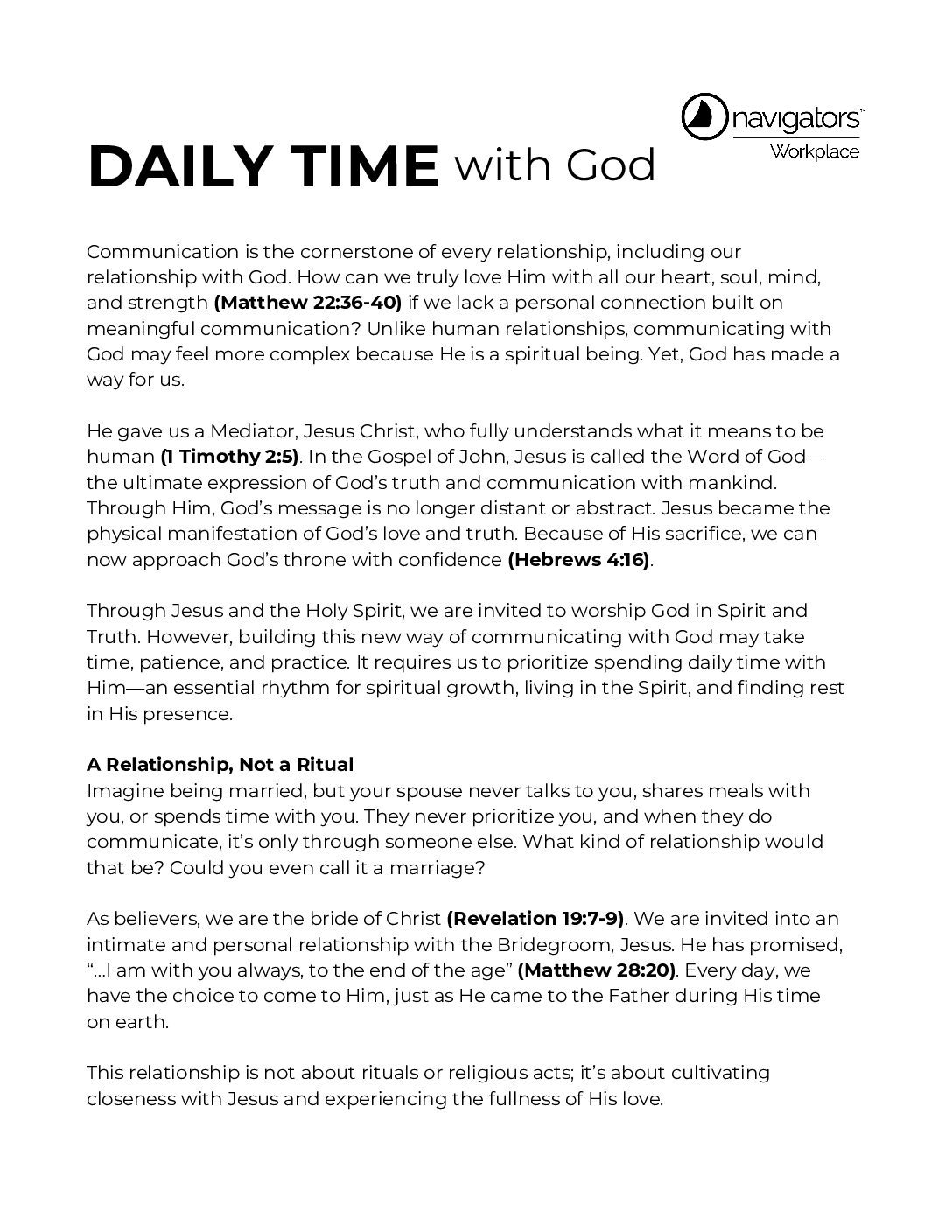 A lesson on why daily time with God is so important and a template for making it a daily habit.